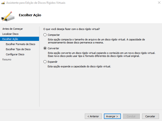 O padrão das instalações do hyper-v para uma máquina virtual é utilizar a configuração de disco dinâmico e formato vhdx, porém esse modelo de disco virtual não é compatível com o ambiente do Azure, então para isso precisaremos converter o disco.