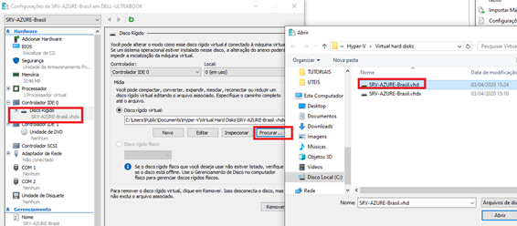 Após isso vamos localizar o diretório que contém o disco de nossa VM e selecionar o disco: