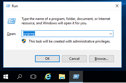 Agora vamos generalizar nossa máquina virtual para enviar para o azure. Com a máquina virtual ligada, vamos logar nela e em iniciar -> executar e digitar “sysprep”: