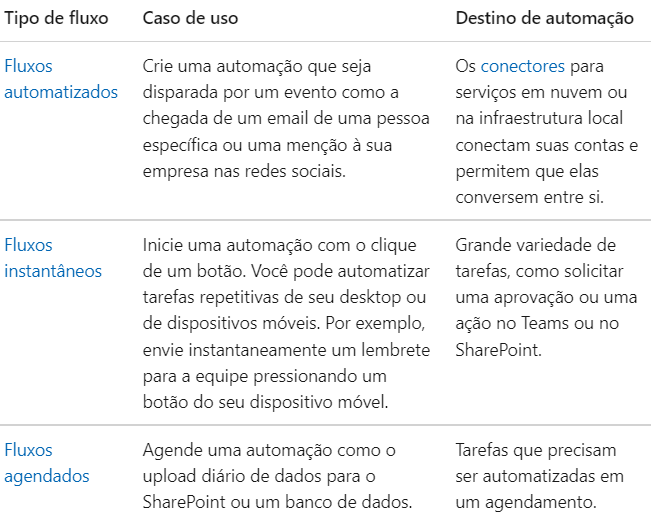 Os fluxos criados no Power Automate são baseados em gatilhos.