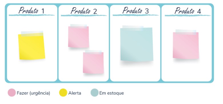 Os cartões são diferenciados por cor, cada cor vai indicar quem é o responsavel pela tarefa e sua respectiva prioridade ou criticidade.