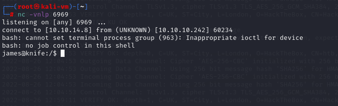 Com aquela breve pesquisada no nosso amigo Google, descobri que é possivel executar comandos com o knife (https://gtfobins.github.io/gtfobins/knife/). Ai é só alegria, utilizei o knife para executar a shell. Descoberta a flag root.txt