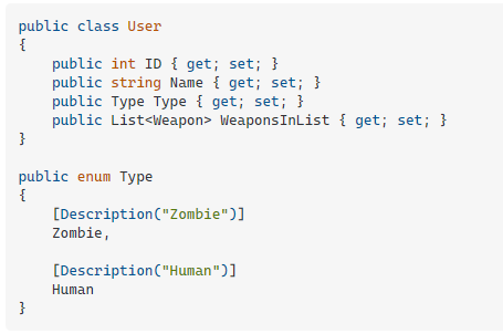 Para facilitar a leitura, estou mantendo o attribute e o valor do enum na mesma linha