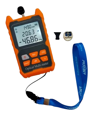Em redes de fibra óptica, os medidores de potência óptica são usados para medir a intensidade do sinal de luz transmitido através das fibras. Isso ajuda a garantir que a transmissão óptica esteja ocorrendo com eficiência.