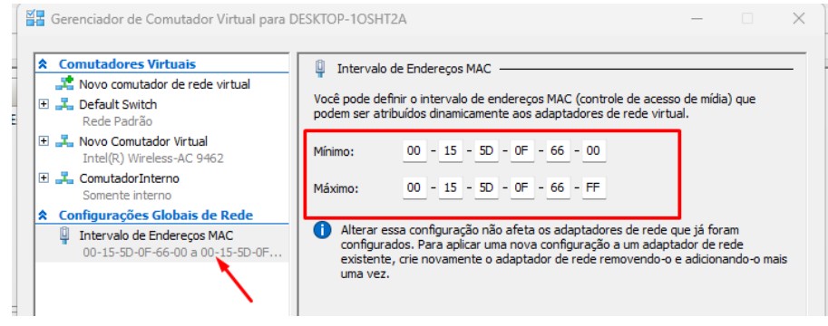 Dentro de gerenciador de comutador virtual e em configurações Globais MAC, você vai