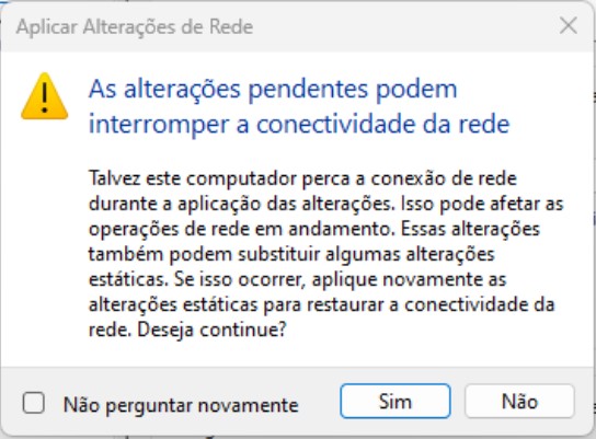 05 – Ao clicar em aplicar, irá aparecer a mensagem abaixo, isso significar que ele irá