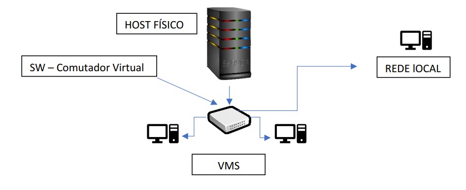 Com o comutador virtual, será possível conectar as suas Vms a redes físicas e as redes virtuais,