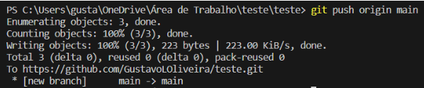 obs: “main” neste comando é uma referência a branch na qual o commit será feito.