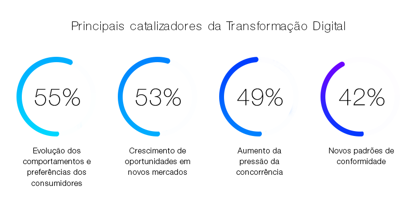 De acordo com dados de estudos, a transformação digital é exatamente a necessidade de se ajustar aos novos padrões de comportamento dos clientes e às respostas que virão da concorrência