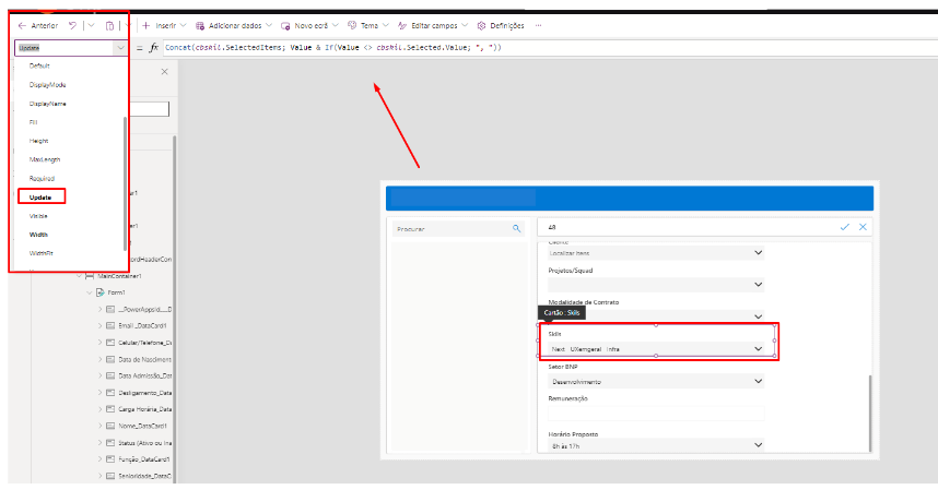 3. Na fórmula de atualização, utilize a função Concat da seguinte forma: