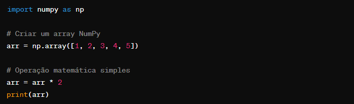 NumPy é a biblioteca fundamental para computação científica em Python. Ela fornece suporte para arrays de alta performance e ferramentas matemáticas essenciais.