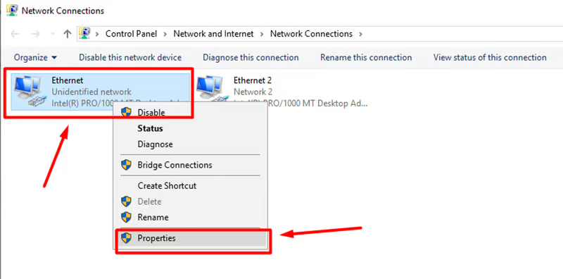 Feito isso, selecione Internet Protocol Version 4 (TCP/IPv4) e clique em Properties.