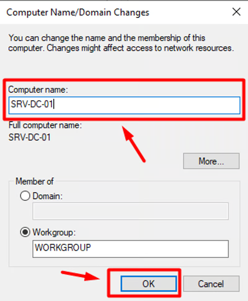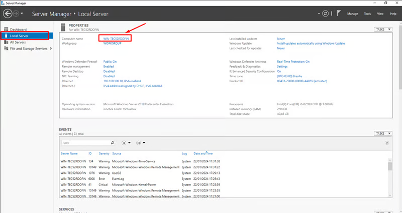 Agora vamos alterar apenas o nome do computador para fazer mais sentido do que se trata o servidor.