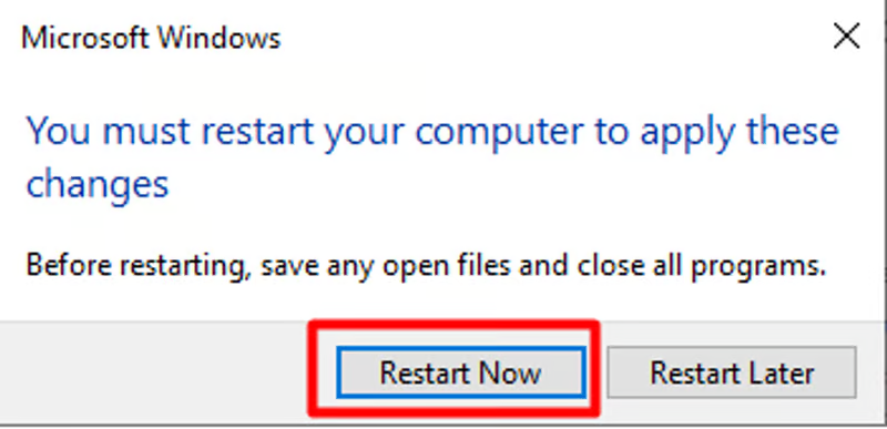 Feche as janelas e quando aparecer a mensagem solicitando o restart do servidor, basta clicar em Restart Now.