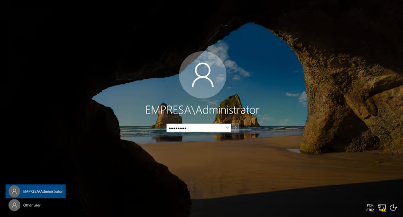 Após concluir a reinicialização, observe que o servidor já se encontra no domínio empresa.local. Logue com o usuário administrador no domínio criado. (EMPRESA\Administrador)