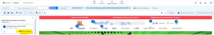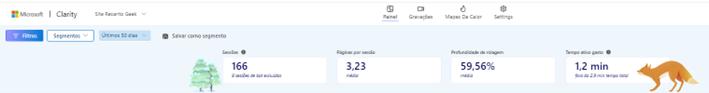 Obs.: Por mais que o filtre esteja selecionando 30 dias, o Clarity foi instalado a apenas 15 dias.