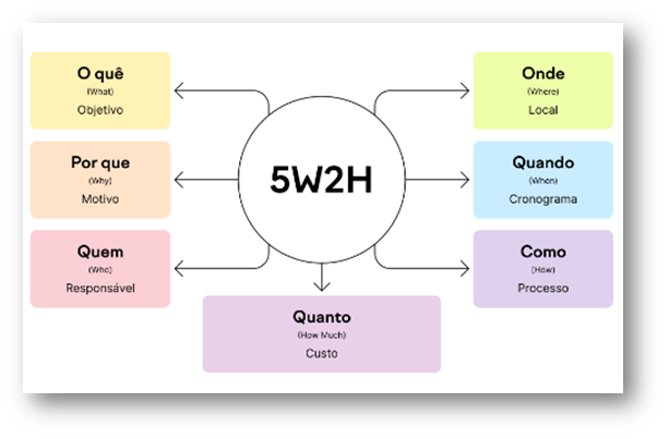 A ferramenta 5W2H é responsável por transformar as ações em práticas, com toda a estruturação que uma ação necessita. Ela indica quais as atividades, os prazos, e as responsabilidades de cada um que está envolvido no determinado projeto.