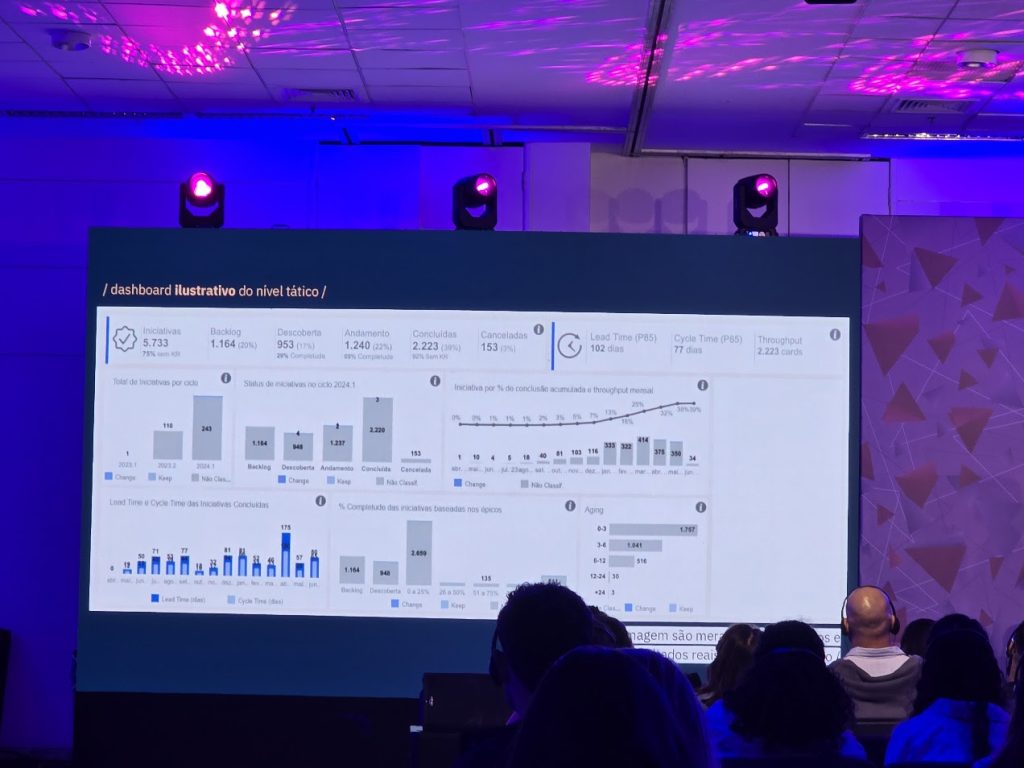 Ele contou que, quando chegou no Grupo Boticário, já existia um time ágil implementando ferramentas com dashboards cheios de métricas de fluxo. Parecia o paraíso dos dados… mas tinha um detalhe: os dados não eram confiáveis.