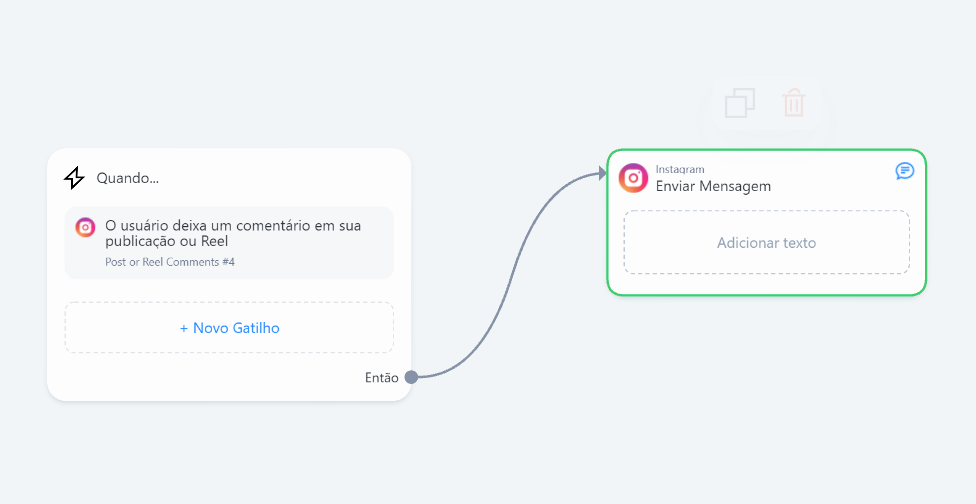 Etapa 12: Para finalizar, vamos configurar a mensagem que será enviada por direct para o seu seguidor. Na mesma tela, clique em “Instagram – Enviar Mensagem”. Ele abrirá uma tela lateral a sua esquerda.