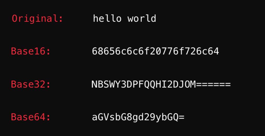 A codificação Base16, também conhecida como codificação hexadecimal, divide os dados em bytes individuais.