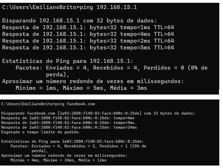 Repare que na segunda figura eu dei um ping em uma página web, tal como o facebook, ele retornou um endereço IPv6. Isso realmente pode acontecer. Essa modalidade de endereçamento IP poderemos discutir em outro post.