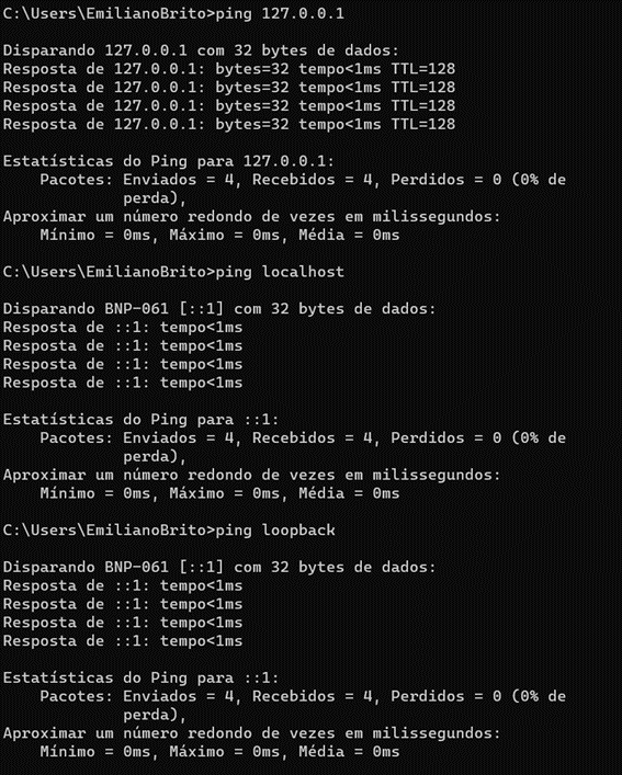 – Ping localhost / ping 127.0.0.1 / ping loopback: Esses 3 comandos têm exatamente a mesma função, ou seja, testar a placa de rede local do computador: