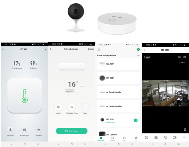 Já com todas essas funções da central inteligente integrando a fechadura eletrônica, o controle de temperatura, os alertas e a possibilidade de monitoração do Nobreak remotamente, também podemos agregar a isso uma monitoração visual com apoio de câmeras com sensor de movimento e captura e envio de áudio, dentro da mesma central Inteligente.