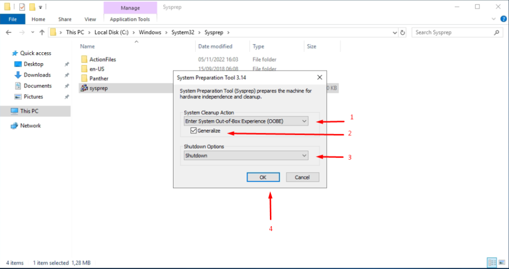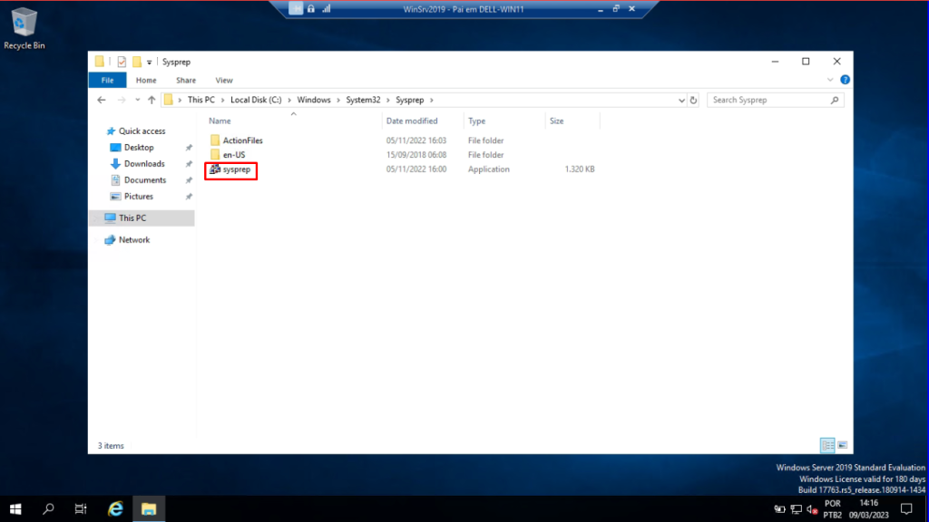 Após todas as configurações, navegue até o diretório C:\Windows\System32\Sysprep e execute o arquivo sysprep.exe.