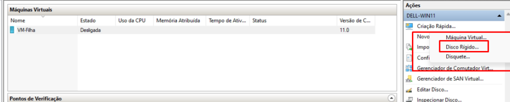 Agora vamos criar uma VM com disco derivado do disco Pai.