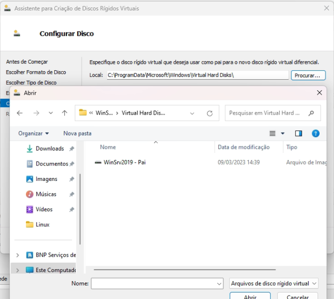 Na próxima tela, indique a localização do disco Pai e clique em concluir.