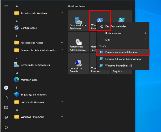Primeiramente, devemos abrir o console do Power Shell em modo Administrador.