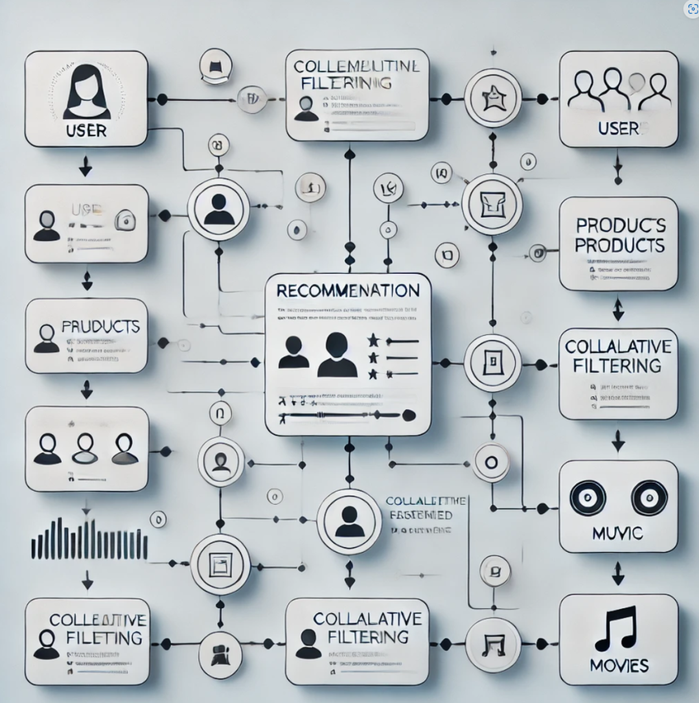 - Filtragem Colaborativa: Baseia-se no comportamento coletivo dos usuários. Ao observar interações passadas com produtos ou serviços, ele sugere itens que outras pessoas com gostos semelhantes já curtiram.