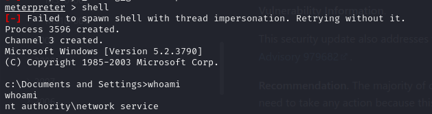 Com o comando whoami consigo ver em qual usuário estou logado, que no caso é p nt authority\network service