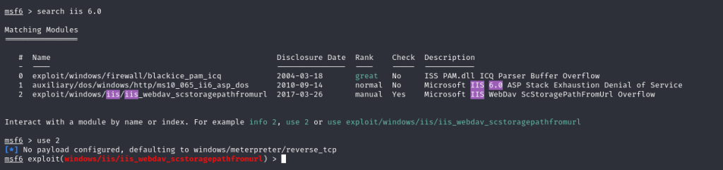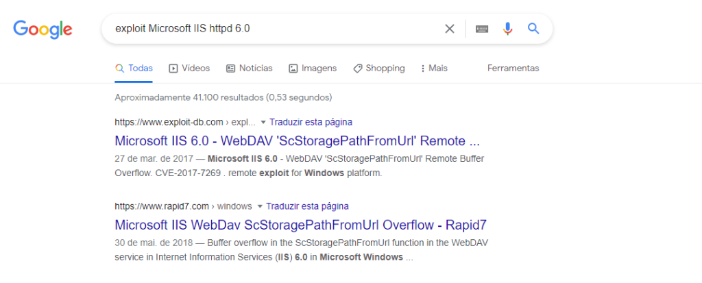 Como não encontrei nada, então resolvi procurar por exploits da versão do IIS 6.0.