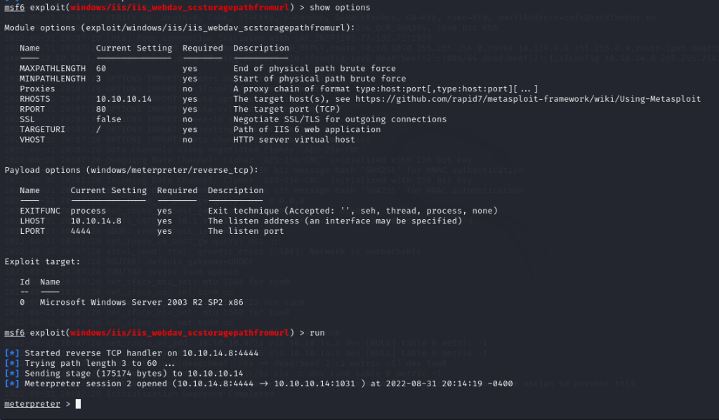 Ao realizar uma pesquisa no metasploit, vi que lá já tinha o exploit pronto para ser executado, o que facilitou meu processo de exploração. Então apenas realizei as configurações do RHOST e do LHOST e consegui obter acesso ao alvo.
