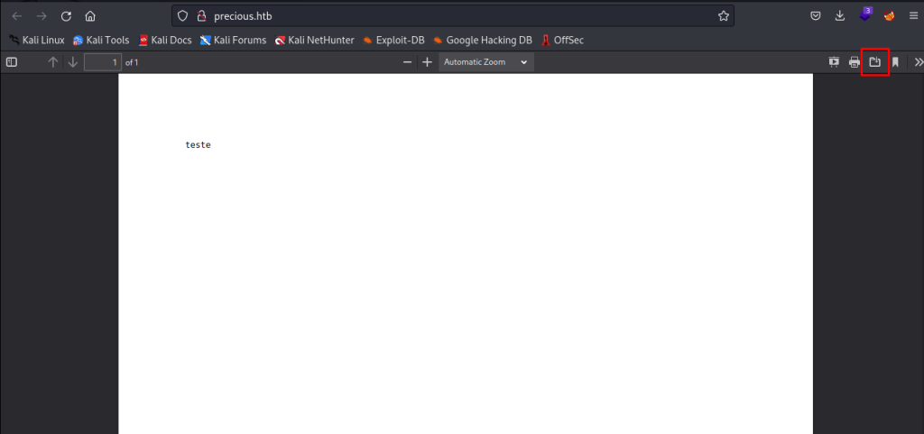 Após algumas análises no burp, não encontrei nada demais. Então vou baixei o pdf para análise.