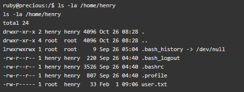 Achei a flag dentro de /home/henry, porém o único usuário que tem permissões de leitura na flag é o próprio henry (ou o root). Normalmente, quando isso ocorre nos CTFs, é um indício que precisarei de alguma forma conseguir logar no usuário que tem a permissão.