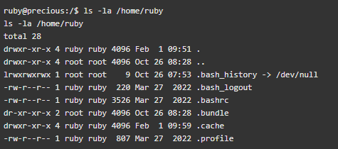 uid=1001(ruby) gid=1001(ruby) groups=1001(ruby)