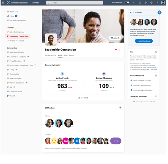 O Yammer não foi desenvolvido pela Microsoft, mas sim comprado por eles em 2012. Desde a data da compra, a Microsoft vem atualizando a ferramenta, e realizando atividades de divulgação, a fim de trazer mais pessoas, e criar uma comunidade mais robusta. Seu objetivo de uso não é apenas para ambiente corporativo, mas também possui disponibilidade uso para estudos, tanto na versão desktop, como aplicativos para celulares.