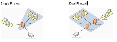 A DMZ geralmente é criada utilizando-se um ou dois firewalls, mas existem DMZs que são utilizados mais de 02 firewalls, chamamos essas arquiteturas de single ou Dual Firewalls.