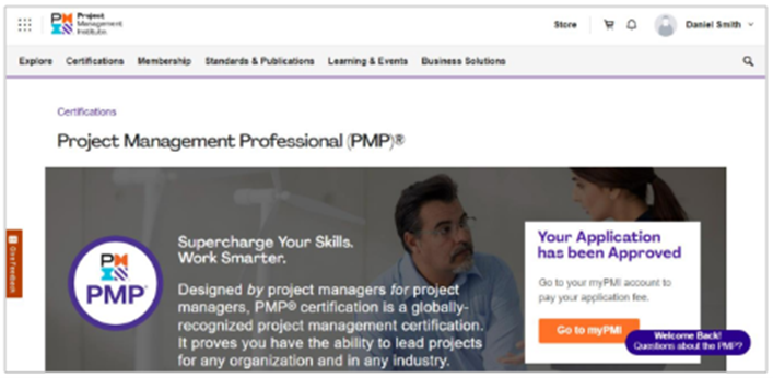 Após receber o retorno do PMI (é bom também entrar no próprio site do PMI para verificar, pois pode ser que o e-mail caia na caixa de SPAM e você acabe não sabendo que já está apto), acesse o site e vá em Certifications >> Project Management Professional (PMP)®. Lá você será notificado que sua aplicação foi aprovada.