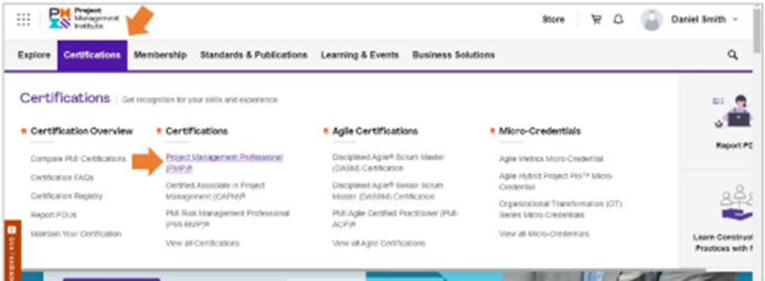 IMPORTANTE: Se você tem um diploma de pós graduação em gerenciamento de projetos, este título pode ser usado como prova na parte das 35 horas de treinamento oficial. Depois desta etapa, você pode submeter seu pedido para fazer a prova, vamos lá:
