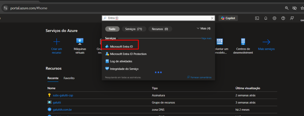 Após fazer login no portal do Azure, acesse o Microsoft Entra ID.