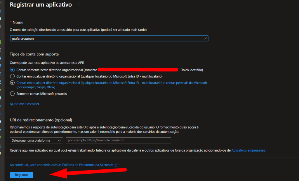 O App Registration no Microsoft Entra ID é utilizado para permitir que aplicações, como o Grafana, acessem de forma segura os recursos e serviços do Azure. Através dele, geramos uma identidade única com permissões específicas, que autoriza o Grafana a consultar métricas e logs do Azure Monitor.