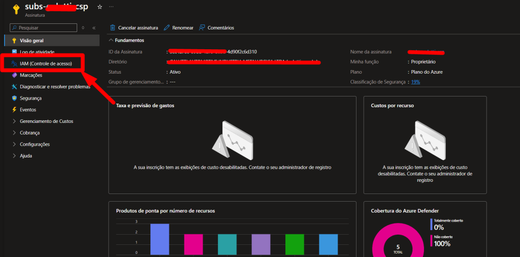 Acesse o recurso escolhido e vá em IAM (Controle de Acesso).