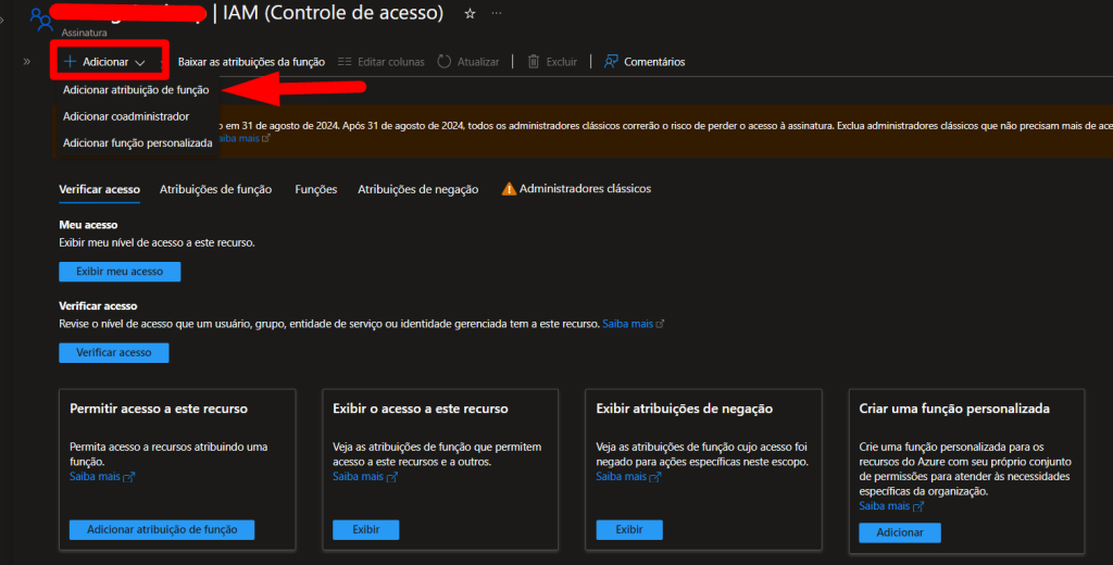 Clique em Adicionar e selecione a opção Atribuição de Função.
