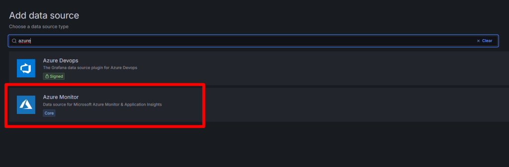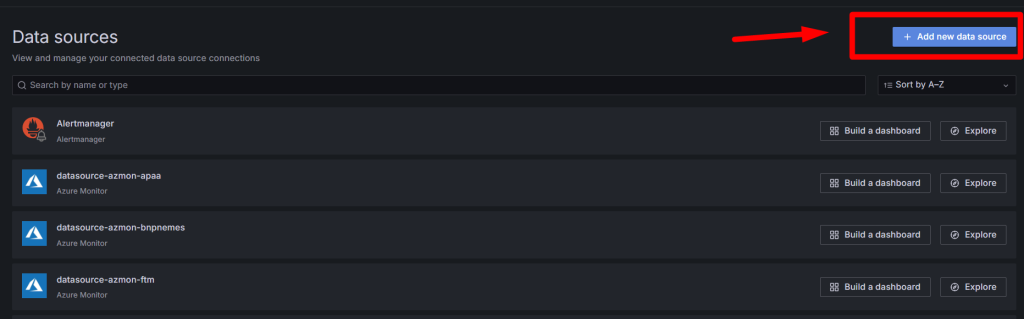 Agora, vamos para a última etapa, que é configurar o Data Source do Azure Monitor no Grafana para usá-lo como fonte dos painéis.