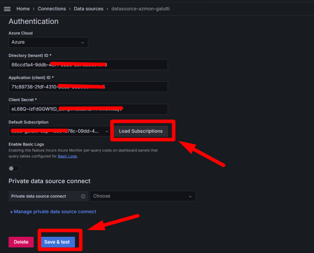 3° Etapa – Configurar Data Source do Azure no Grafana