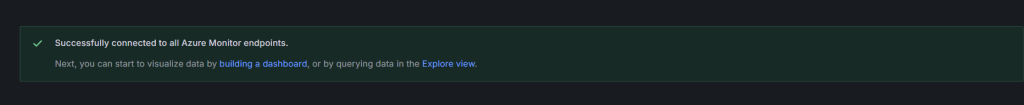Se tudo estiver correto, uma mensagem de sucesso será exibida, e você estará pronto para criar dashboards utilizando o Data Source do Azure Monitor.