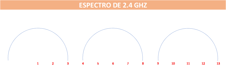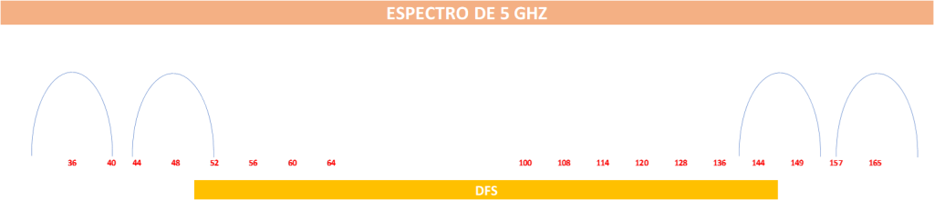 Abaixo ilustro ambos os espectros, de 2.4 Ghz e de 5 Ghz, com a disponibilidade de canais.
